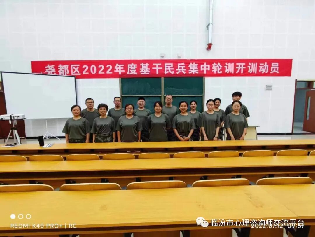 七月骄阳红似火,民兵训练正当时。为落实党中央新时代强军思想,临汾市2022年度基干民兵集中训练在山西师大文理学院展开。按照集训命令,7月11日至13日,以临汾市心理疏导协会会长郝红瑞为排长的心理疏导排齐装满员参加了本次集训。通过同志们的共同努力、刻苦训练,圆满完成了所有科目,实现了预期目标。